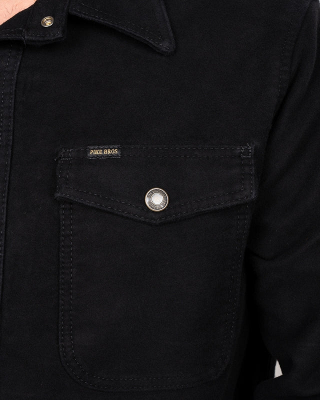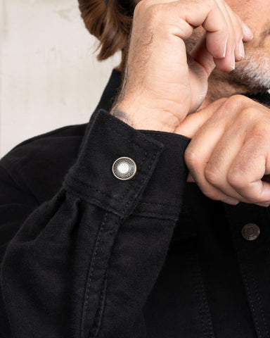 Historically CPO shirts have been made from wool or poly/wool fabrics. For our sulphur black version we have used a heavy moleskin fabric. The moleskin is made in Germany to old specifications.