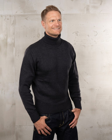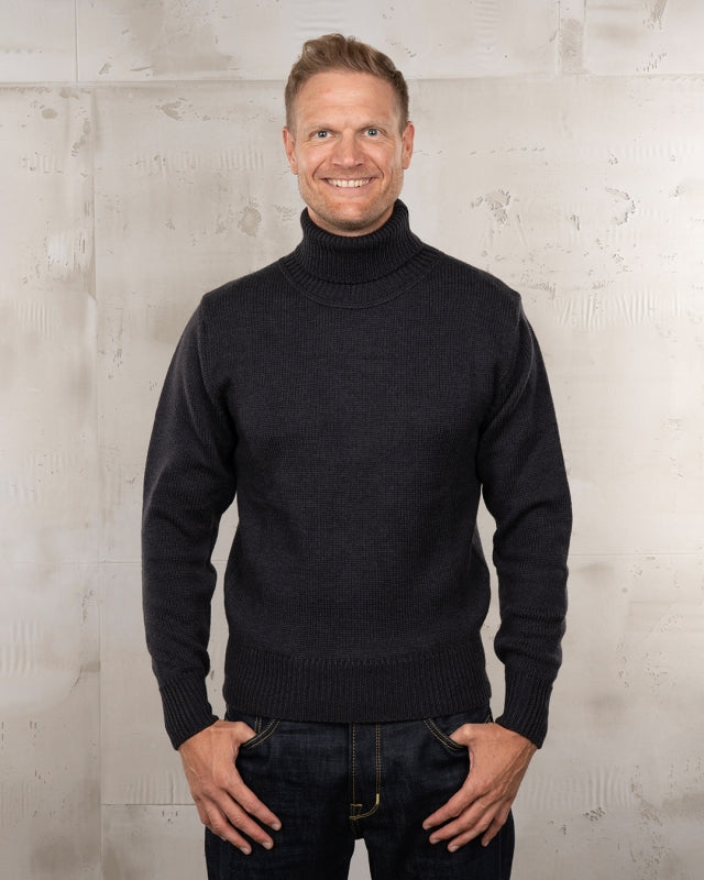 Our 1923 Turtle Necks are inspired by the sailor sweaters of the 1920s. They feature a close-fitting cut, a high turtleneck, and are knitted thick. Our yarn is sourced from the Italian spinning mill Tollegno, and it is RWS certified. This represents the highest standard in yarn spinning.
