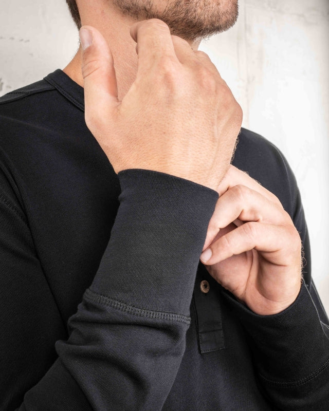 1927 Henley Shirt Long Sleeve Deep Black Pike Brothers
