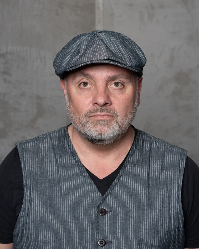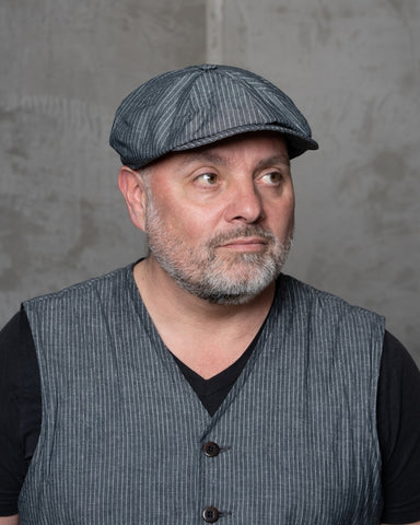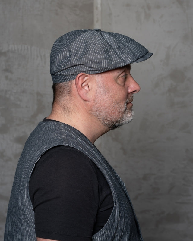 1928 Newsboy Cap grey striped linen Pike Brothers